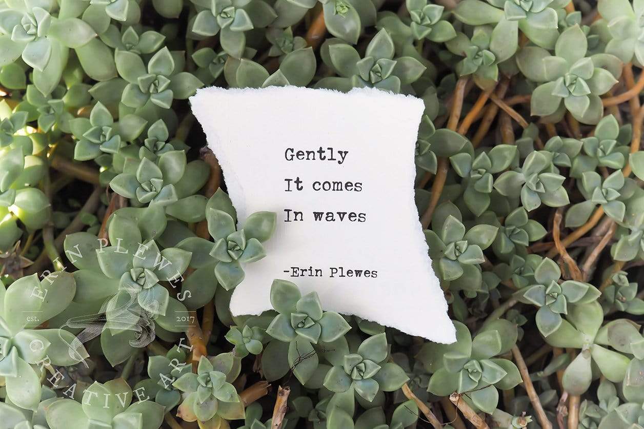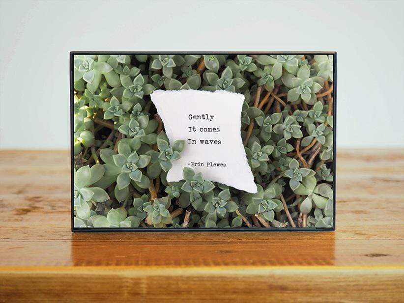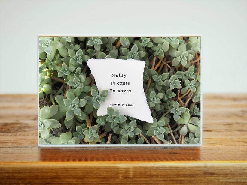 "Gently Comes In Waves" is a print of an inspirational micro poem placed in pale green succulents. It is meant to help bring you a sense of peace. Each photograph comes in 2 sizes and can be purchased framed or matted. By giving this meaningful gift to a loved one (or to yourself) it will be a daily reminder to release and let go.