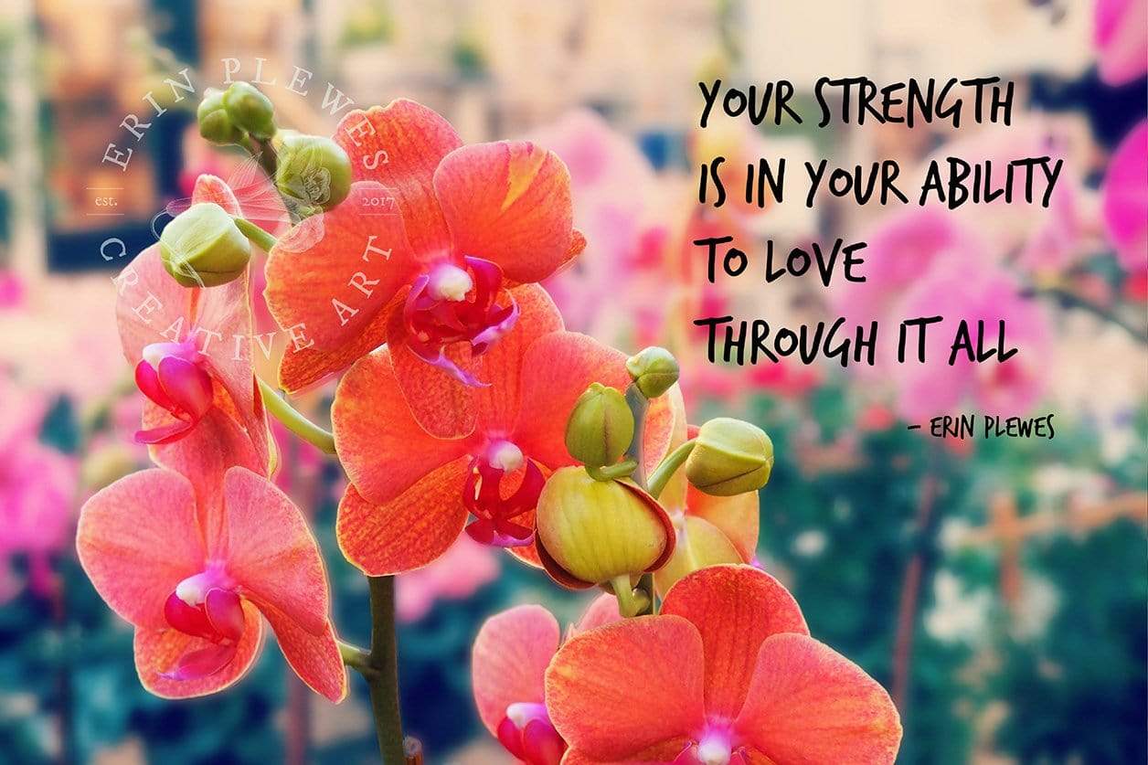 This artwork is a print of an inspirational poem that I wrote over a nature photo of bright pink and coral orchids. Each photograph comes in 2 sizes and can be purchased framed or matted. By giving this meaningful gift to a loved one (or to yourself) it is meant to bring you peace and remind you of your strength.