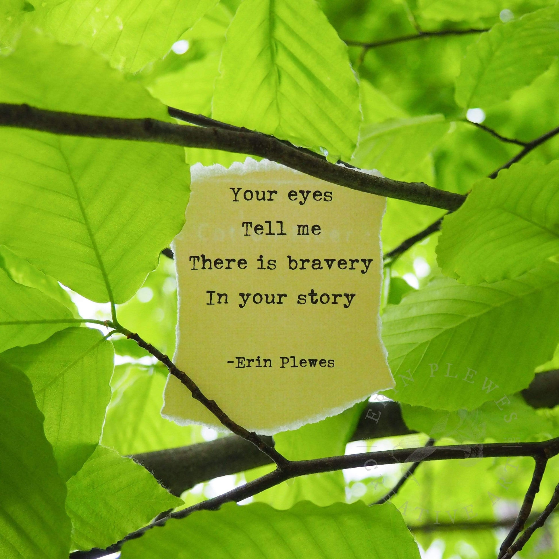 "Bravery In Your Story" is a mini framed photo of an inspirational poem that I wrote. Nestled in bright green leaves this artwork is a meaningful gift. By giving this home decor to a loved one (or to yourself) it is meant to be a reminder of your strength.