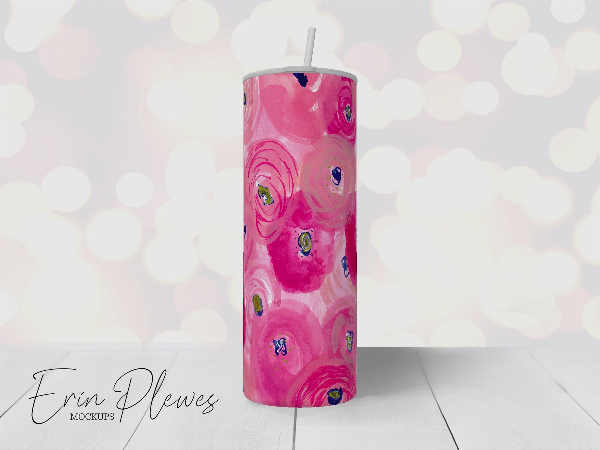 Floral 20oz Skinny Tumbler Design Sublimation PNG, Watercolor Roses Straight and Tapered 20 oz Tumbler Digital Download Template